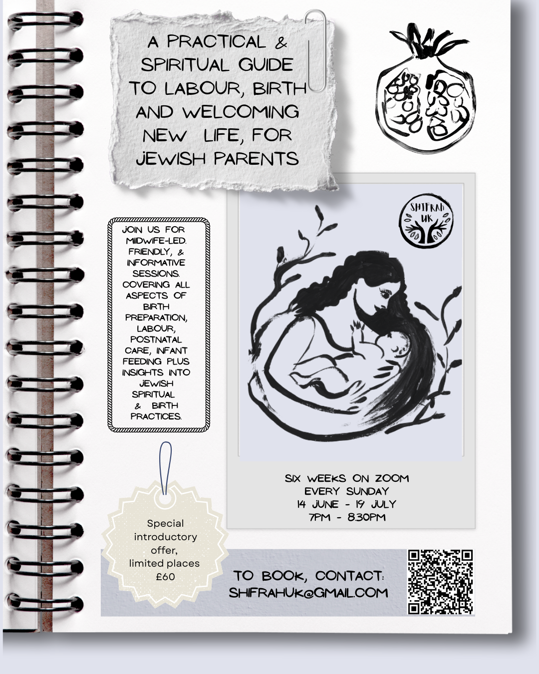 Here at Shifrah UK we starting midwife-led, friendly and informative sessions for Jewish parents and those with Jewish heritage. The course will be delivered over six week, on Sunday evenings, covering all aspects of birth preparation, labour, postnatal care, infant feeding plus insights into Jewish spiritual and birth practices.